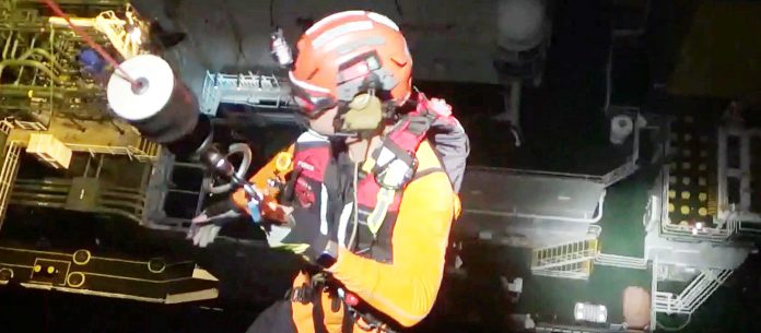 【警政時報 鄭元毓、鄭自達/綜合報導】一艘位於台南安平西南方 46 浬處的希臘籍油輪「KITHNOS」20日發生緊急醫療事故,一名 37 歲希臘籍男性船員在船上不慎跌倒導致昏迷,急需緊急醫療後送。海巡署接獲國搜中心通報後,立即啟動海空聯合救援機制,由偵防分署空勤吊掛分隊高雄第三小隊配合空勤總隊,派遣黑鷹直升機展開夜間跨海搜救,成功於深夜將傷患吊掛送往高雄小港醫院救治,順利守護外籍船員生命安全。